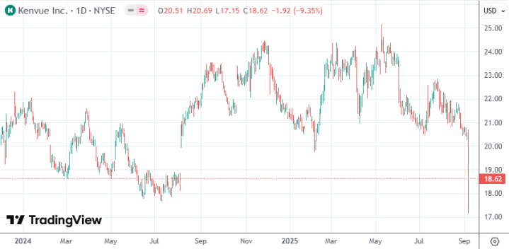 财联社9月7日讯(编辑赵昊)周五(9月5日),美国科赴公司(KenvueInc.)股价收跌9.35%报18.62美元实盘股票配资官网,盘中一度跌约17%至17.15美元,为2024年7月以来的最低水平。